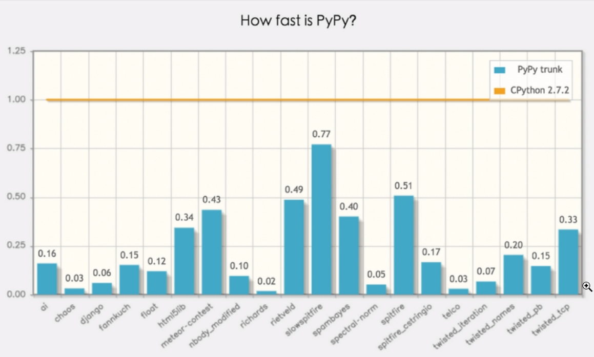 pypy --基于Cpython下的python,cpython--》C语言--》机器码返回给pypy,下次执行就不用找C语言翻译成机器码,直接给操作系统执行。优点:快 缺点:还不够稳定,不是主流。