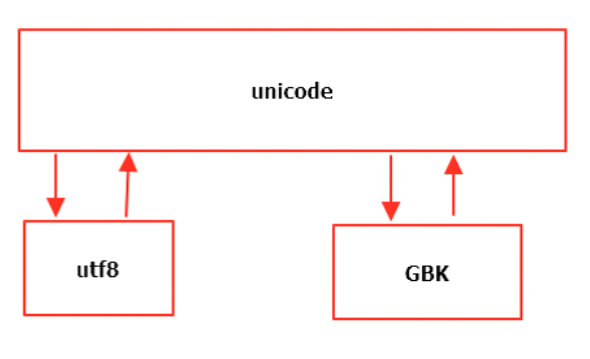 unicode 万国编码,最少16为二进制表示,但太浪费空间,于是有了utf8(用三个字节表示一个中文字),用尽可能少的位数来编码。 gbk(专门为中文的编码方式,用两个字节表示中文字)