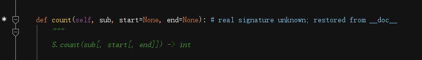 python数据类型 type(变量名) 查看变量类型 输入数据类型 str or int 之类 按住Ctrl再点击它,会出现源码说明,如下图(其中sub为子序列,start是字符串的开始位置,end为结束位置,详情用法看下文字符串章节)