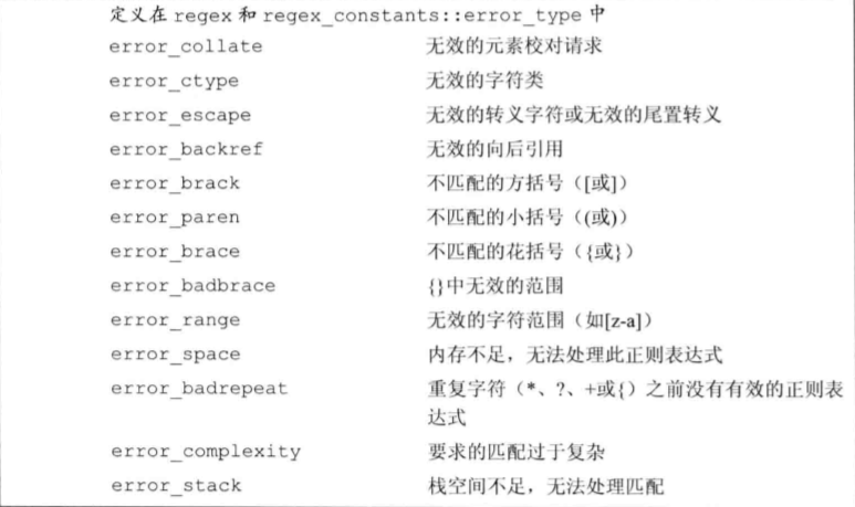 | sregex_iterator | 迭代器适配器,调用regex_search来遍历一个string中所有匹配子串 |