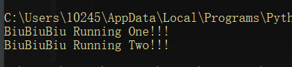 class Student(object): def run(self): print('BiuBiuBiu Running One!!!') class Infor(object): def run(self): print('BiuBiuBiu Running Two!!!') def runT(Student): Student.run() StuA=Student() runT(StuA) infA=Infor() runT(infA)