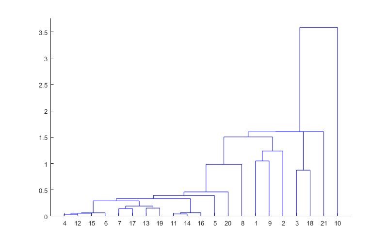 从图中我们可以看出,k=4开始,折线下降趋势变缓。因此,根据谱系图我们可以得到分类: