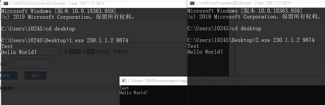 #include <stdio.h> #include <stdlib.h> #include <WinSock2.h> #pragma warning(disable:4996) #pragma comment(lib, "ws2_32.lib") void ErrorHandling(const char* msg); int main(int argc, char* argv[]) { WSADATA wsaData; SOCKET hSocket; SOCKADDR_IN sendAdr; WSABUF dataBuf;//待传输数据 char msg[] = "Network is Computer."; DWORD sendBytes = 0;//实际发送了多少字节 WSAOVERLAPPED overlapped;//结构体对象,使用事件判断是否完成传输 WSAEVENT evObj; if (argc != 3) { printf("Usage:%s <IP> <port>\n", argv[0]); exit(-1); } if (WSAStartup(MAKEWORD(2, 2), &wsaData) != 0) ErrorHandling("WSAStartup() error"); // 创建重叠套接字 hSocket = WSASocket(PF_INET, SOCK_STREAM, 0, NULL, 0, WSA_FLAG_OVERLAPPED); memset(&sendAdr, 0, sizeof(sendAdr)); sendAdr.sin_family = AF_INET; sendAdr.sin_addr.S_un.S_addr = inet_addr(argv[1]); sendAdr.sin_port = htons(atoi(argv[2])); if (connect(hSocket, (struct sockaddr*)&sendAdr, sizeof(sendAdr)) == SOCKET_ERROR) ErrorHandling("connect() error"); // 创建事件 evObj = WSACreateEvent(); // 初始化结构对象 memset(&overlapped, 0, sizeof(overlapped)); overlapped.hEvent = evObj; // 初始化WSABUF结构体,赋值数据信息 dataBuf.len = strlen(msg) + 1; dataBuf.buf = msg; // 判断数据是否传输完成 /* 如果没有错误发生并且发送操作立即完成,则 WSASend返回零。 在这种情况下,一旦调用线程处于警报状态,就已经计划完成例程的调用。 否则,将返回SOCKET_ERROR的值,并且可以通过调用WSAGetLastError来检索特定的错误代码 。 错误代码 WSA_IO_PENDING表示重叠操作已成功启动,并将在以后指示完成。 任何其他错误代码表示重叠操作未成功启动,并且不会出现完成指示。 */ if (WSASend(hSocket, &dataBuf, 1, &sendBytes, 0, &overlapped, NULL) == SOCKET_ERROR) { // 当数据传输尚未完成,仍处于传输状态 if (WSAGetLastError() == WSA_IO_PENDING) { puts("Background data receive"); WSAWaitForMultipleEvents(1, &evObj, TRUE, WSA_INFINITE, FALSE); WSAGetOverlappedResult(hSocket, &overlapped, &sendBytes, FALSE, NULL); } else { ErrorHandling("WSASend() error"); } } printf("Send data size: %u\n", sendBytes); WSACloseEvent(evObj); closesocket(hSocket); WSACleanup(); system("PAUSE"); return 0; } void ErrorHandling(const char* msg) { fputs(msg, stderr); fputc('\n', stderr); system("PAUSE"); exit(-1); }