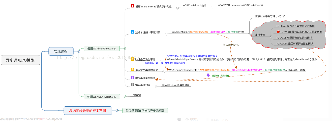 对于指定I/O监视对象和实际验证状态,select是一起的,WSAEventSelect是分离的