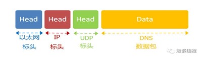 然后,把整个UDP数据包放入IP数据包的"数据"部分,而前面说过,IP数据包又是放在以太网数据包之中的,所以整个以太网数据包现在变成了下面这样: