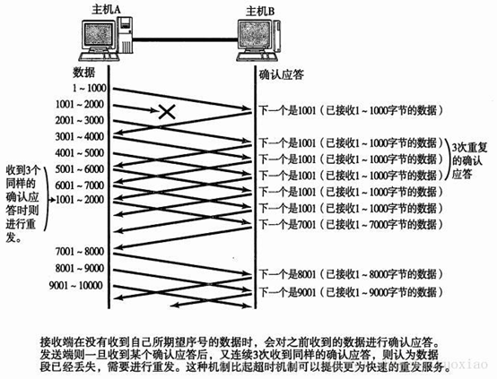 这个协议非常复杂,但可以近似认为,它就是有确认机制的UDP协议,每发出一个数据包都要求确认。如果有一个数据包遗失,就收不到确认,发出方就知道有必要重发这个数据包了。