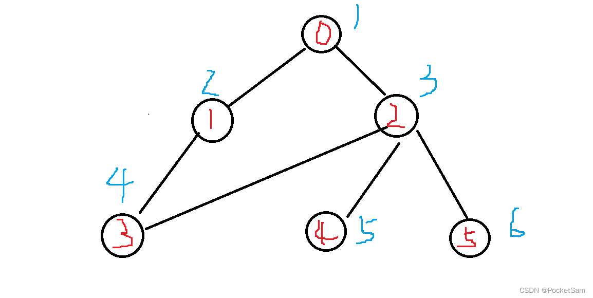 易知:0,1,2,3 为一个点双;2,4 为一个;2,5 为一个;