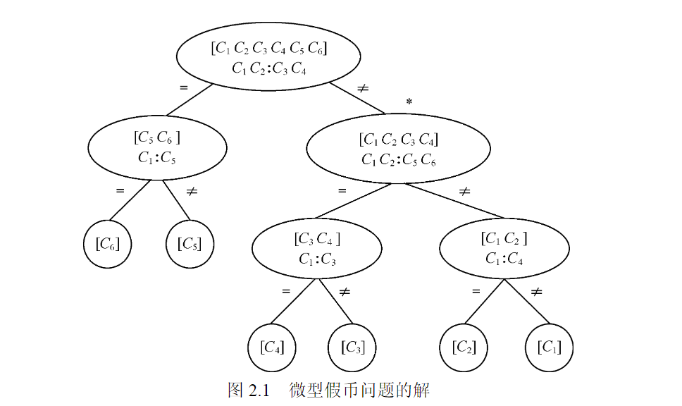 有6枚硬币,已知其中一枚是假的或伪造的,但是不知道这枚假币比真币轻还是重。普通的天平可以用于确定任何两组硬币的质量是否相等,或者一组硬币比另一组硬币轻还是重。