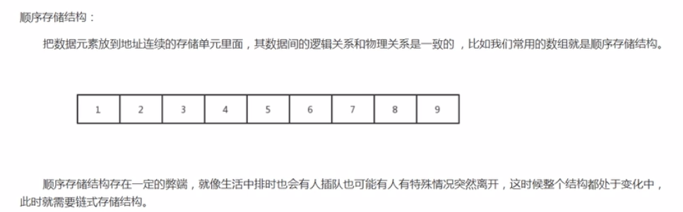 (2)物理结构:逻辑结构在计算机中真正的表示方式称为物理结构,也可以叫做存储结构。常见的物理结构有顺序存储结构 、链式存储结构。