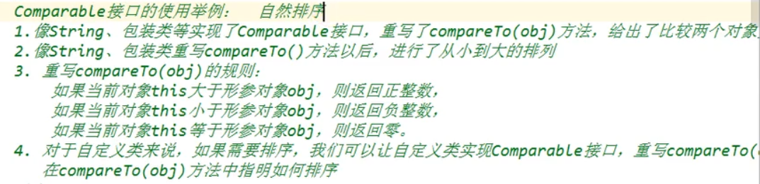 (1)Comparable接口的使用:(自然排序)