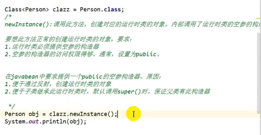 注意:创建运行时类的实例通常直接用clazz.newInstance(),而不是调用构造器clazz.getDeclaredConstruct(xxx).newInstance()