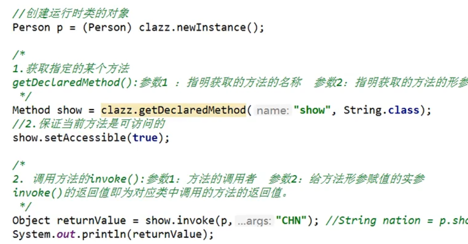 非静态方法被调用(invoke)要传入具体对象p,静态方法被调用可以传入null或者当前类person.class,而不是具体对象p