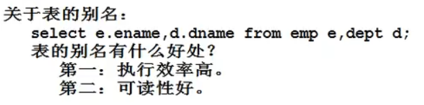 重点:当两张表进行连接查询的时候,如果没有进行任何条件限制,最终的查询结果条数是两张表记录条数的乘积。另外,在连接查询时最好给每个表起别名,select的时候限定要查询表的字段名,可以省去在其他表中查找该字段的操作,执行 效率高。