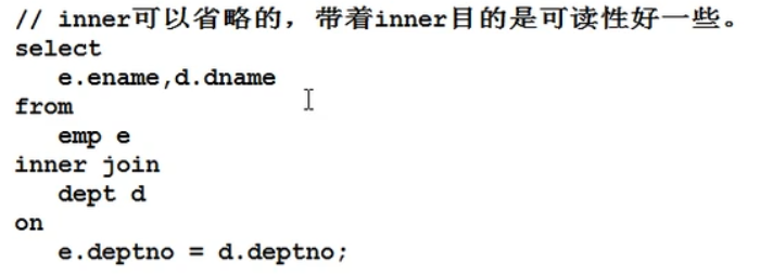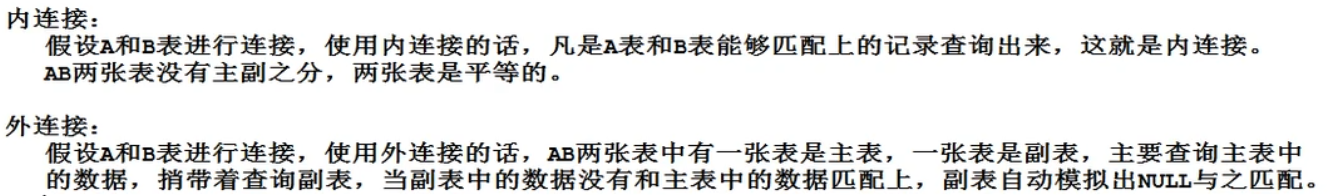 注意:区分内连接和外连接 不是看inner和outer(因为都可以省略),而是看有无left或right,有则是外连接,无则是内连接。