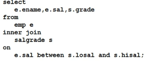 (5)内连接之非等值连接:(连接条件是非等值关系)