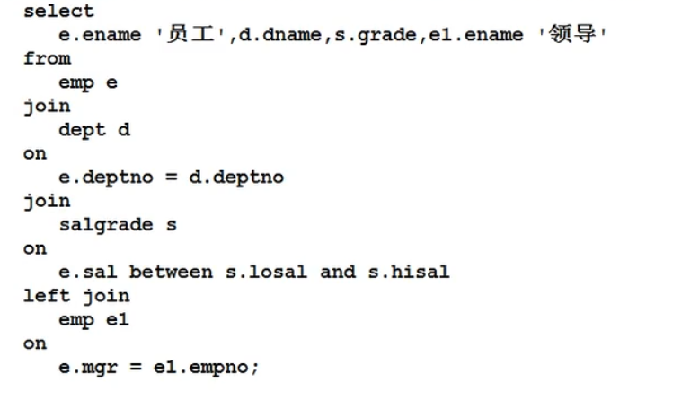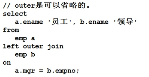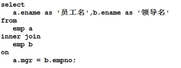 c.例:找出每个员工的上级领导。主要搞清楚谁是主表,左连接主表放在左边,右连接主表放在右边(下面是左连接,a就是主表)