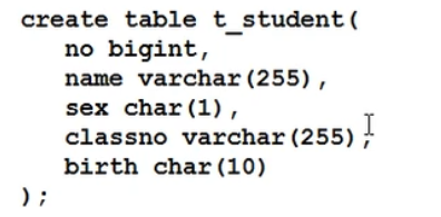 (六)创建表(可以在建表时后跟default来指定默认值)