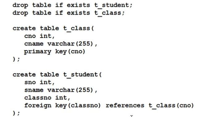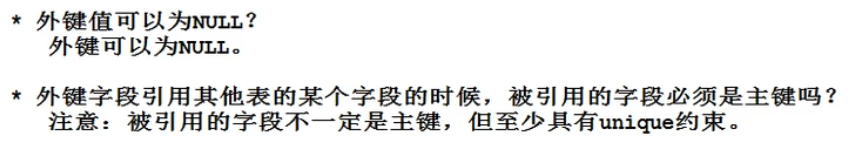 (4)外键约束 (重点!) 格式:foreign key(字段名) reference 被引用表名(字段名)