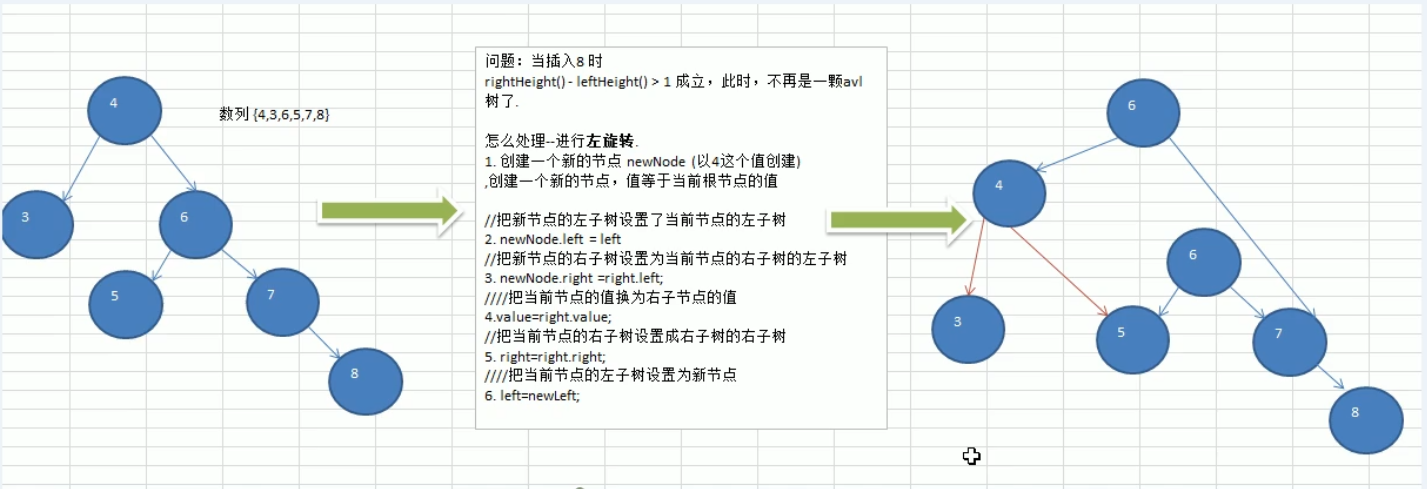 (1)当右子树高度-左子树高度 > 1, 则进行左旋转。