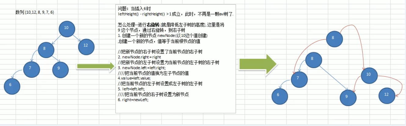 (2)当左子树高度-右子树高度 > 1,则进行右旋转。