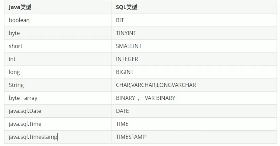 Java与SQL对应数据类型转换表
