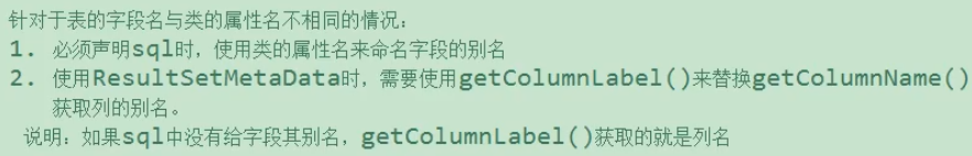 1 //测试查询操作 2 @Test 3 public void queryTest(){ 4 String sql = "select id cid, name cname, email cemail from customer where id < ?"; 5 List<Customer> customer = query(Customer.class, sql, 10); 6 System.out.println(customer); 7 } 8 9 //实现通用的查询操作,返回查找到数据的对象 10 @Test 11 public <T> List<T> query(Class<T> clazz, String sql, Object ...args){ 12 Connection conn = null; 13 PreparedStatement ps = null; 14 ResultSet rs = null; 15 try { 16 //1.获取数据库连接 17 conn = getConnection(); 18 //2.预编译sql语句,返回PreparedStatement实例 19 ps = conn.prepareStatement(sql); 20 //3.填充占位符 21 for (int i=0; i<args.length; i++){ 22 ps.setObject(i+1,args[i]); //注意setObject从 1 开始填充 23 } 24 //4.执行查询(注意这里不是execute了)并得到结果 25 rs = ps.executeQuery(); 26 //5.获取结果的元数据,用于得到字段名,和列数 27 ResultSetMetaData rsmd = rs.getMetaData(); 28 int colnum = rsmd.getColumnCount(); 29 List<T> ret = new ArrayList<>(); 30 while(rs.next()){ 31 T t = clazz.newInstance(); 32 //处理结果集一行数据中的每一列 33 for(int i=0; i<colnum; i++){ 34 //获取列值 35 Object colvalue = rs.getObject(i+1); 36 //获取列名(有别名则获取到别名) 37 String collabel = rsmd.getColumnLabel(i+1); 38 //通过反射,给t对象的coluname属性赋值为colvalue 39 Field field = clazz.getDeclaredField(collabel); 40 field.setAccessible(true); 41 field.set(t,colvalue); 42 } 43 ret.add(t); 44 } 45 return ret; 46 } catch (Exception e) { 47 e.printStackTrace(); 48 } finally { 49 //5.资源的关闭 50 closeResource(conn, ps, rs); 51 } 52 return null; 53 }