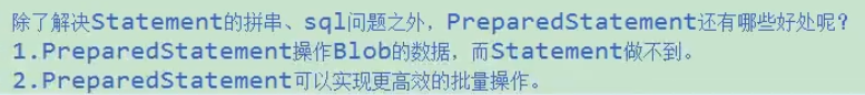 获取连接后,就可以通过创建PreparedStatement(预编译sql statement)对象操作数据库。