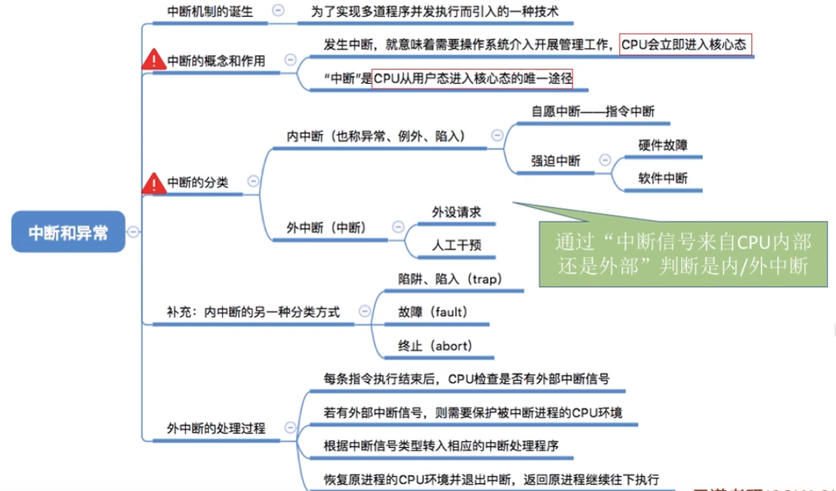 注意:用户态——>核心态是通过中断来实现的,并且中断是唯一途径;