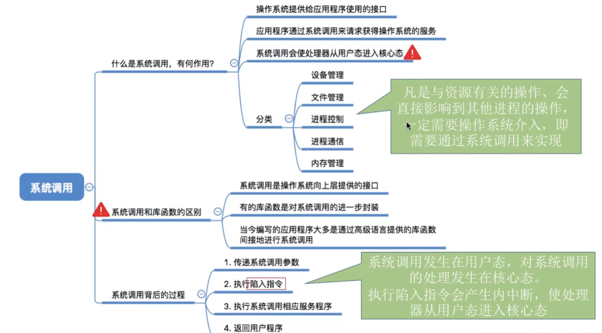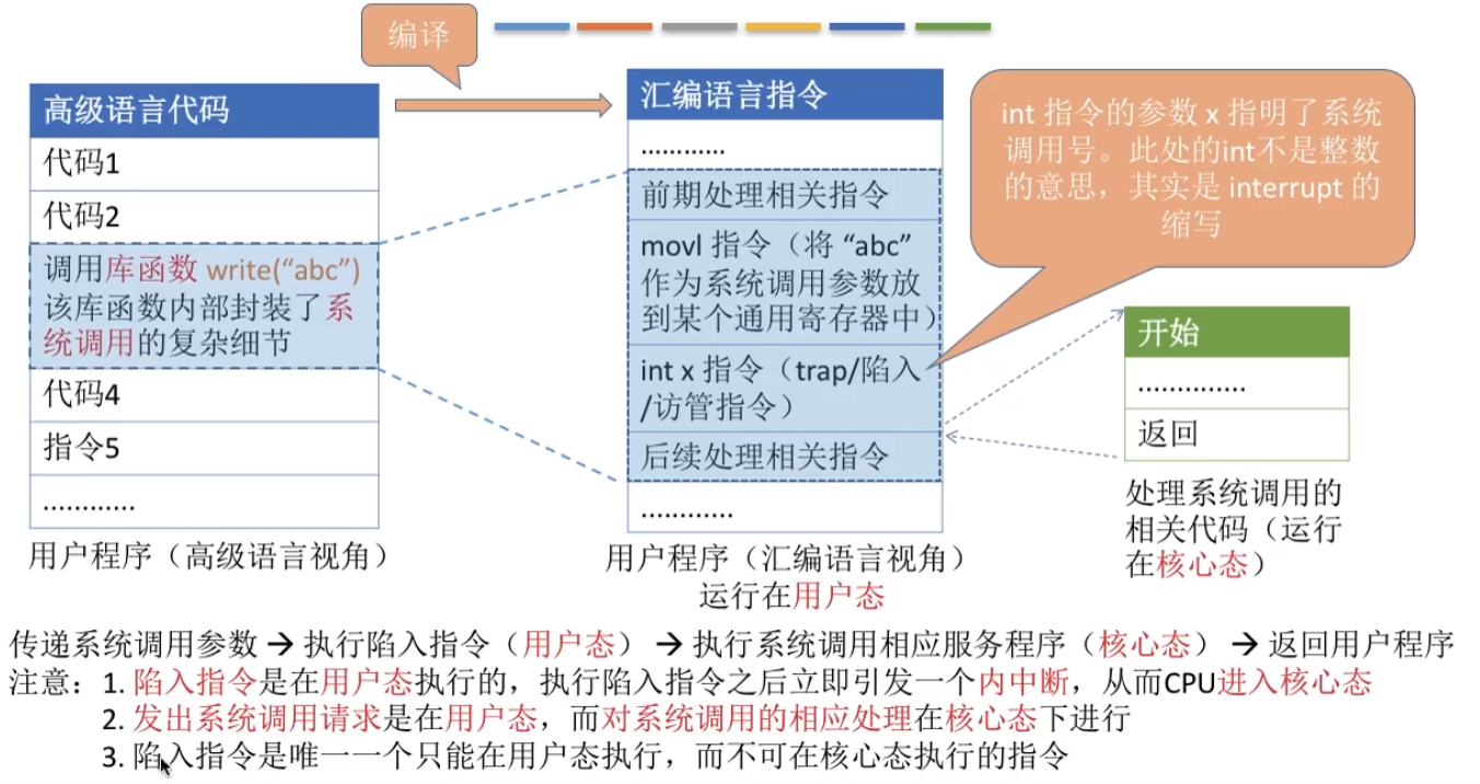 六:系统调用 (系统调用会使处理器从用户态进入核心态)