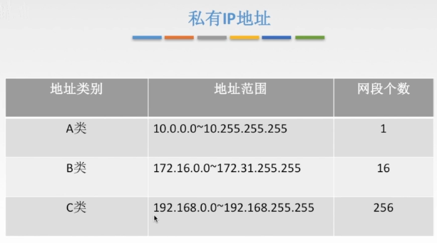 属于下面地址范围的为私有地址,路由器不予以转发(需要通过NAT与外界通信)