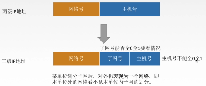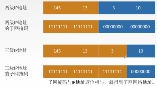 子网掩码:(为了定位到具体的子网号,将主机号对应的位全置为0,网络号及子网号对应的位全置为1,这样构成的子网掩码和一个ip地址进行‘’与‘’运算后得到的就是具体的网络号+子网号)