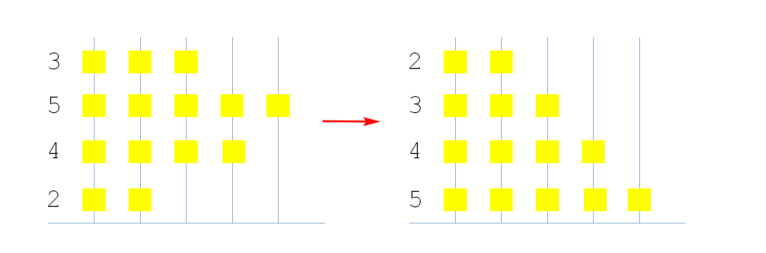 看见这个神奇的玩意了吗?我们把待排数列当成一堆穿在串上的珠子,然后————轰!的一声加上重力,珠子就下落成了我们想要的模样
