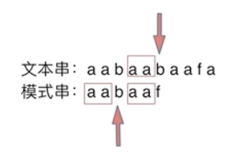 不匹配字符f,f前一位的前缀表记录的是2,说明文本串第6位的前面2位 和 模式串第6位的前面2位以及模式串的头2位相同,那么下一次匹配从模式串第3个字符开始匹配。