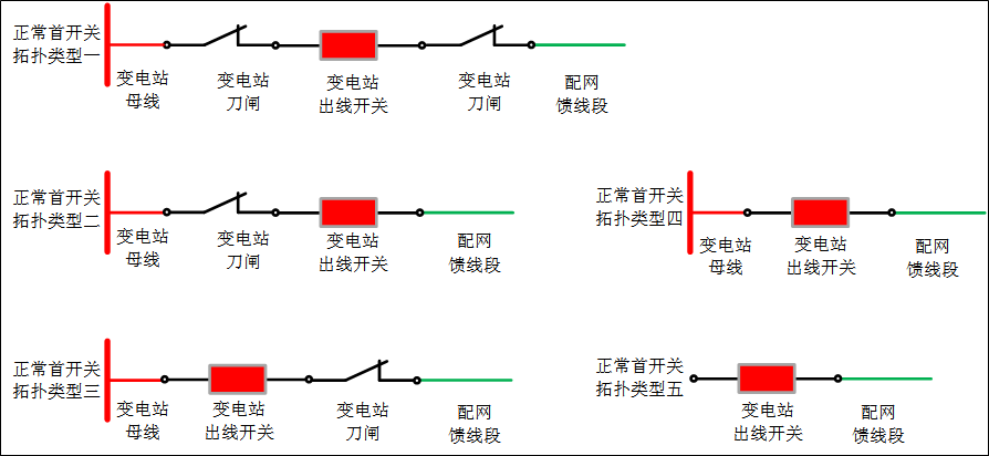 拓扑连接核心宗旨:首开关两侧可连接两种设备,1、主网刀闸,2、配网馈线段。如首开关一侧连接的刀闸容器为馈线段,肯定报错,因为主网变电站出线开关不可能直接与配电网柱上刀闸或者开关相连,必然要从变电站出线开关侧经过电缆或馈线段类设备连接过去。