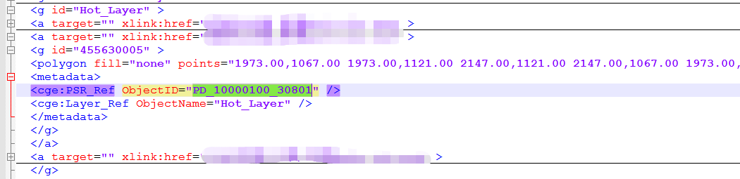 自动成图的原图中在Hot_Layer层中写入的是图形界面中跳转的链接信息,正确导入后可在图形界面通过热点跳转和切换到相关线路中,通常原图中Hot_Layer中的描述如下: