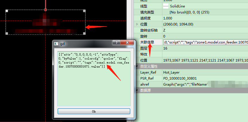 1、首先通过gd打开xtsvg/路径下导入到系统中的图形文件,查看相应的跳转链接图元的关联信息是否正确填写,如不正确填写,请进行下一步排查。