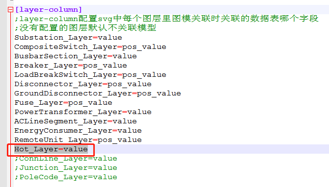 3、若以上检查的原图SVG文件内容均正常,且rdfid也可正确在库中找到该馈线,则请检查modelfile/red/pms/svgimp.ini以及modelfile/dms_autodraw/svgimp.ini文件的配置情况。其中只有当以下几个配置信息均正常填写时,才能正常关联相应的跳转信息。信息如下: