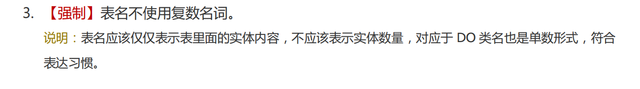 1.阿里的java开发手册中有这个规定,但是上面的截图中就有很多复数,不够统一。