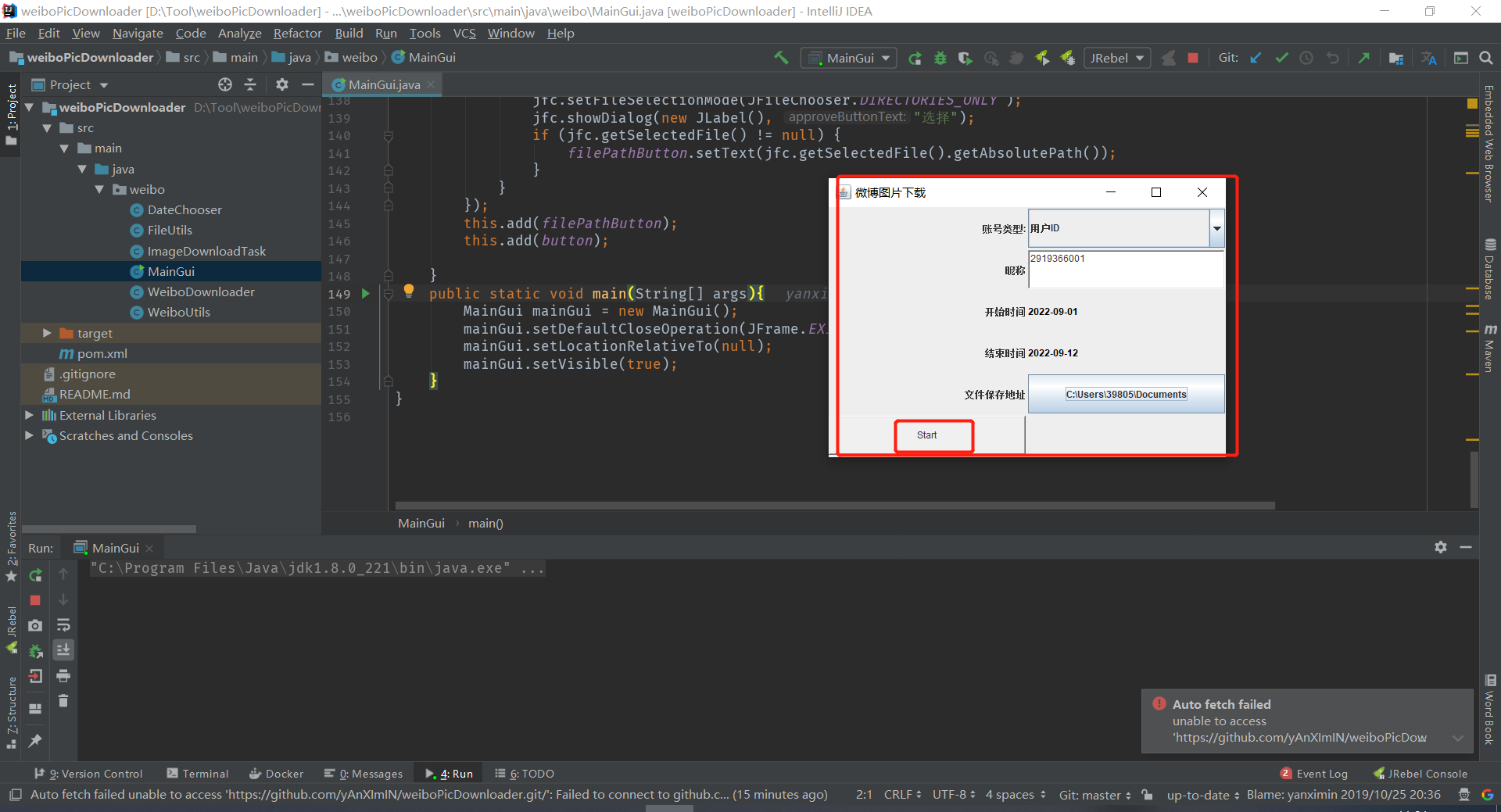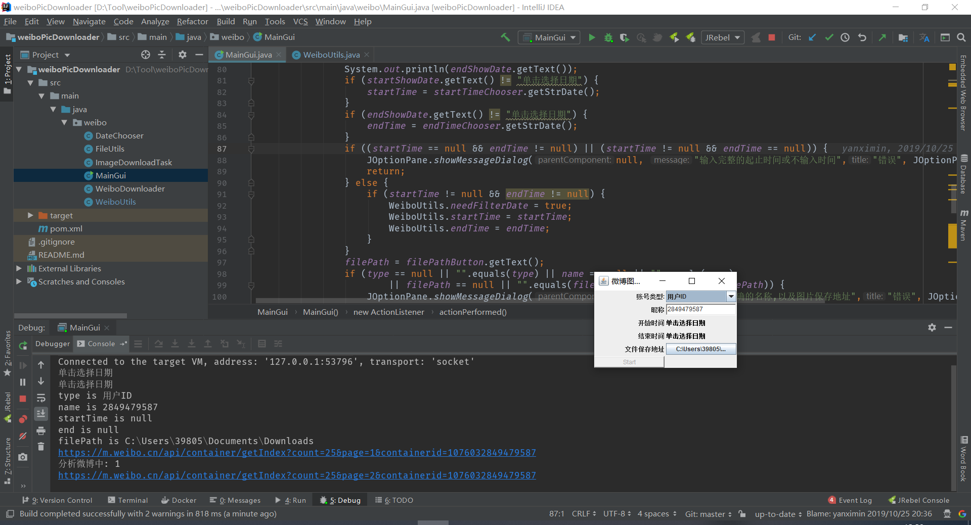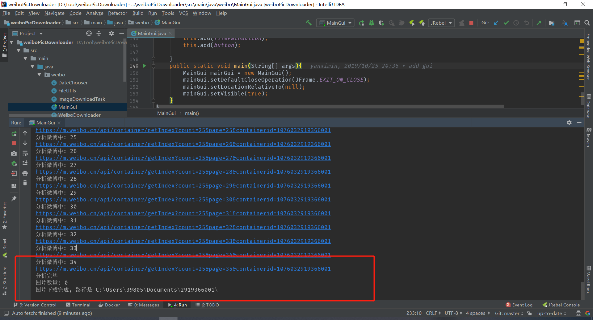 1.代码基础:https://github.com/yAnXImIN/weiboPicDownloader.git