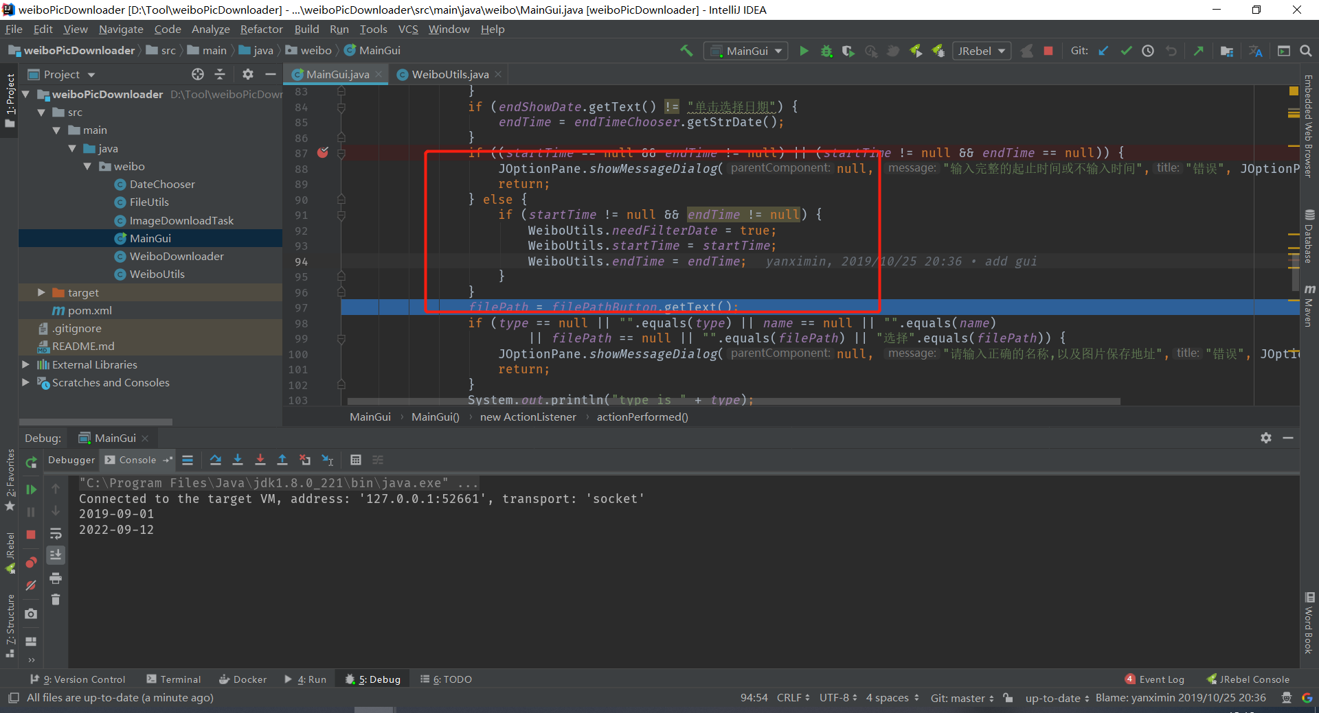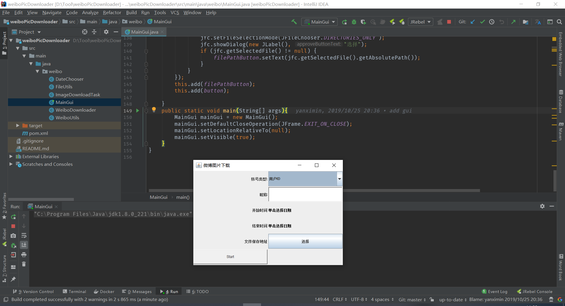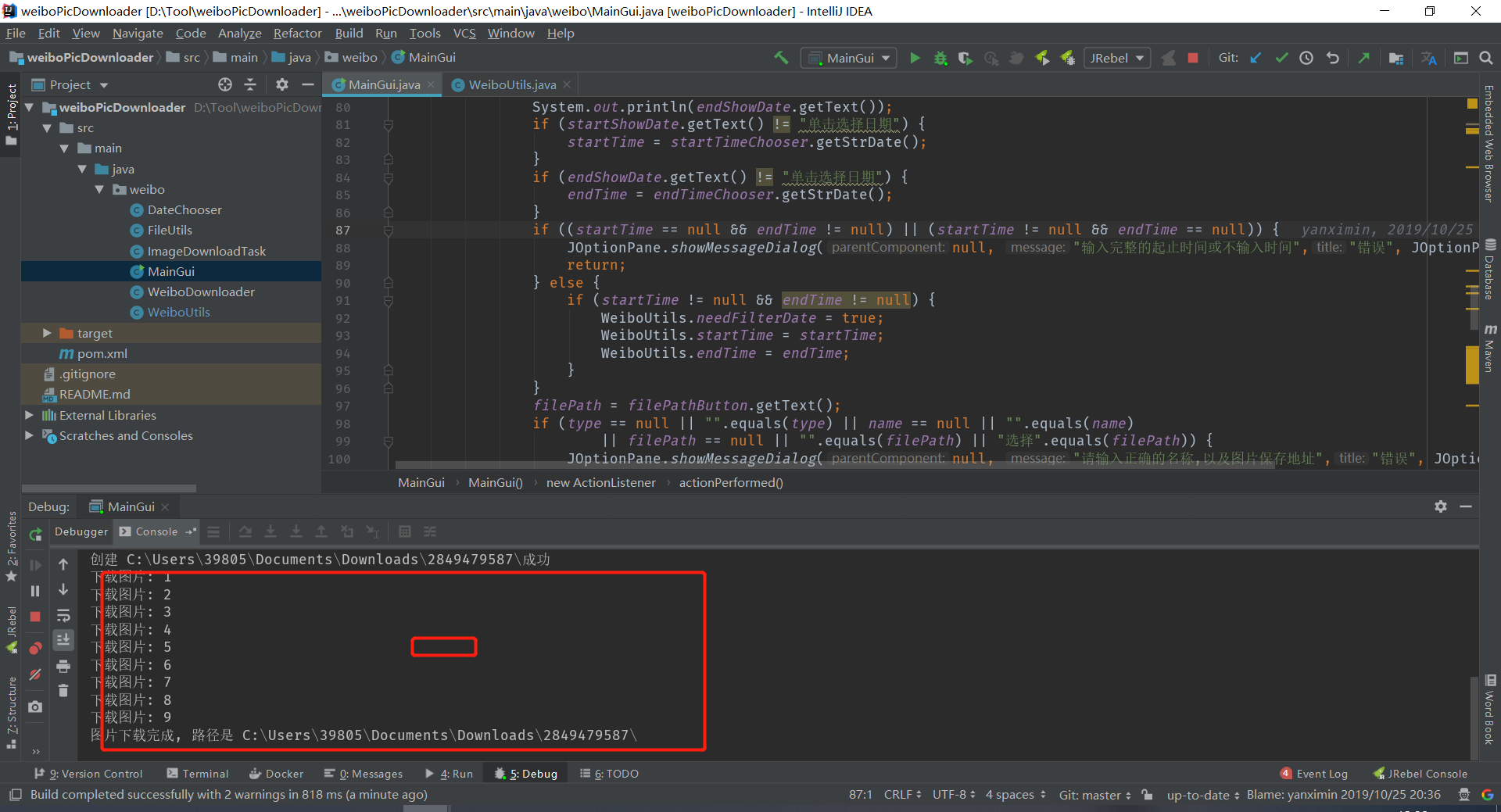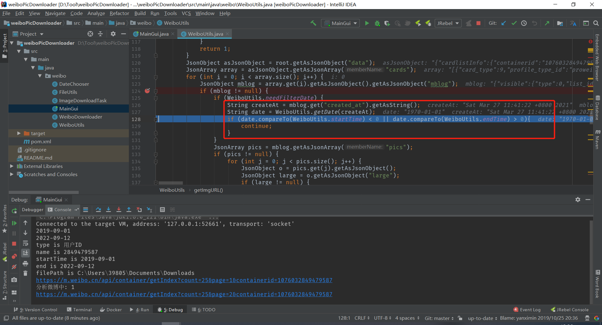 1.代码基础:https://github.com/yAnXImIN/weiboPicDownloader.git