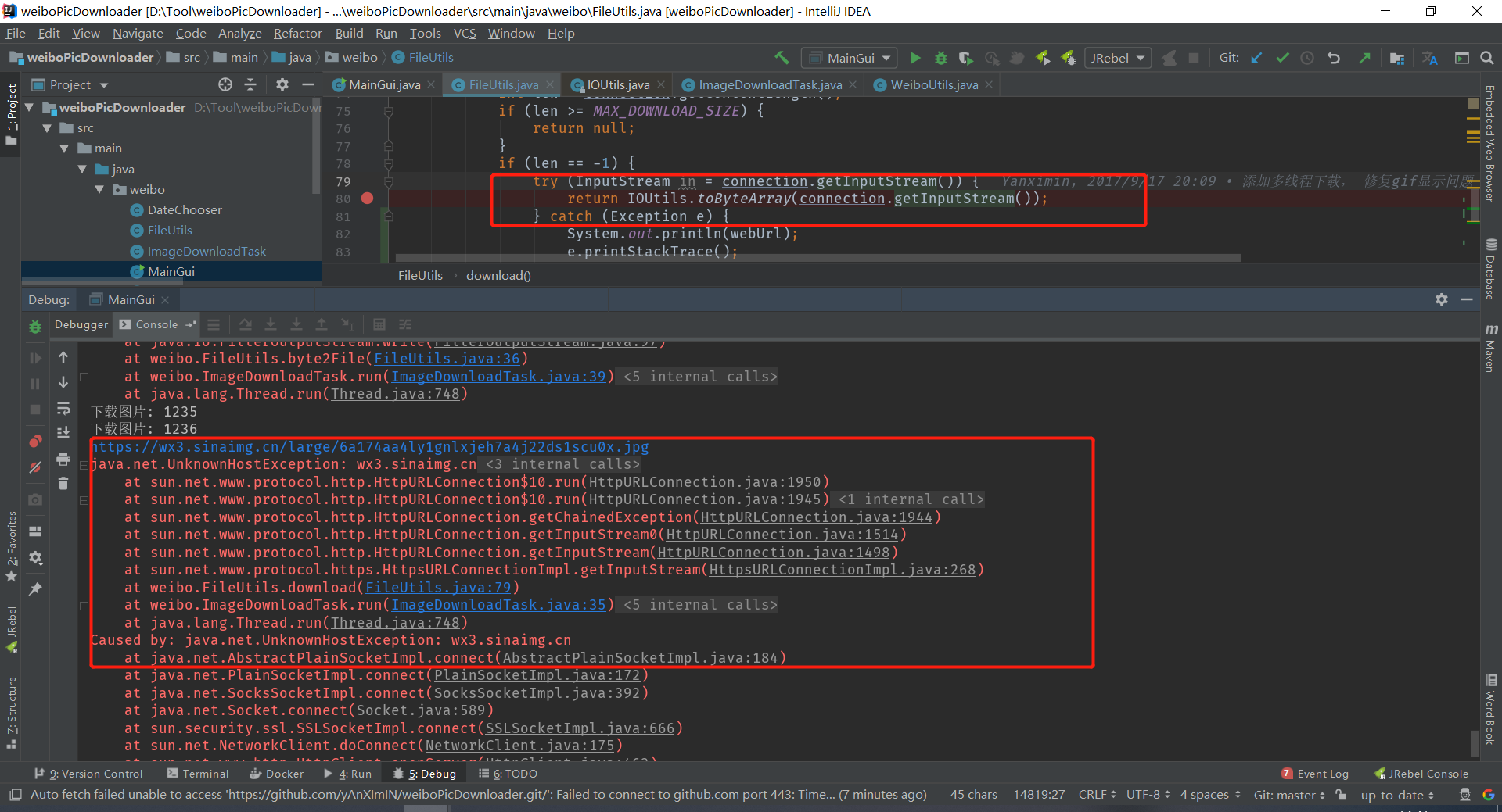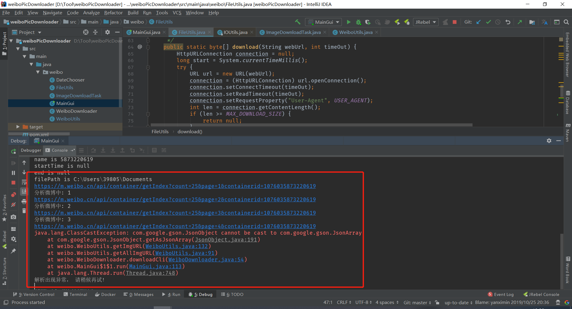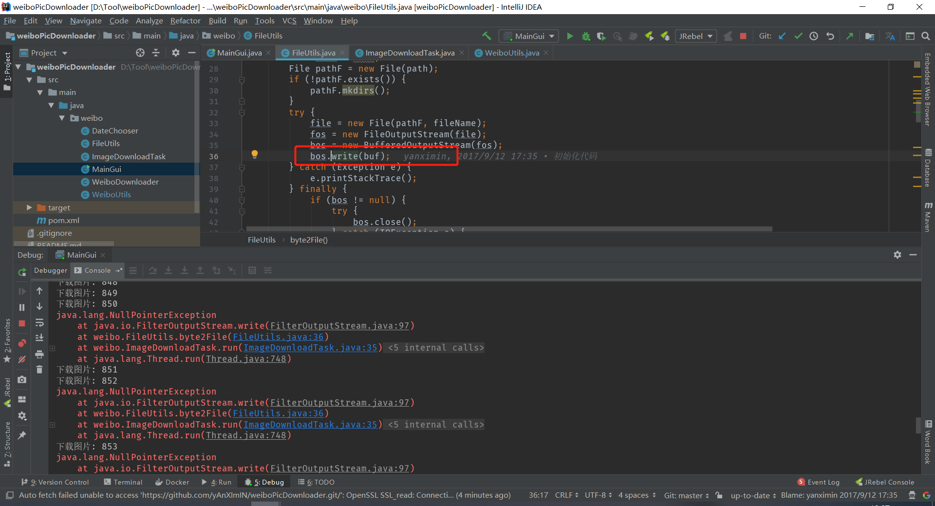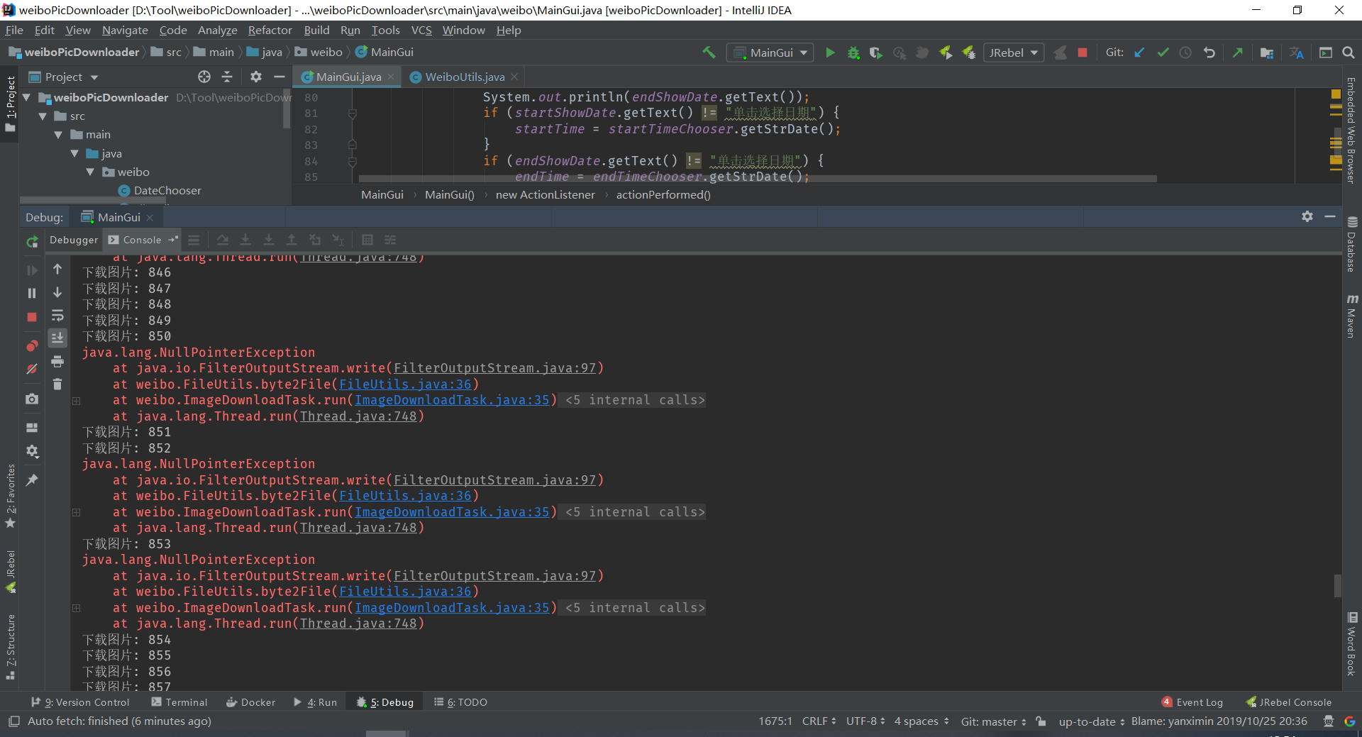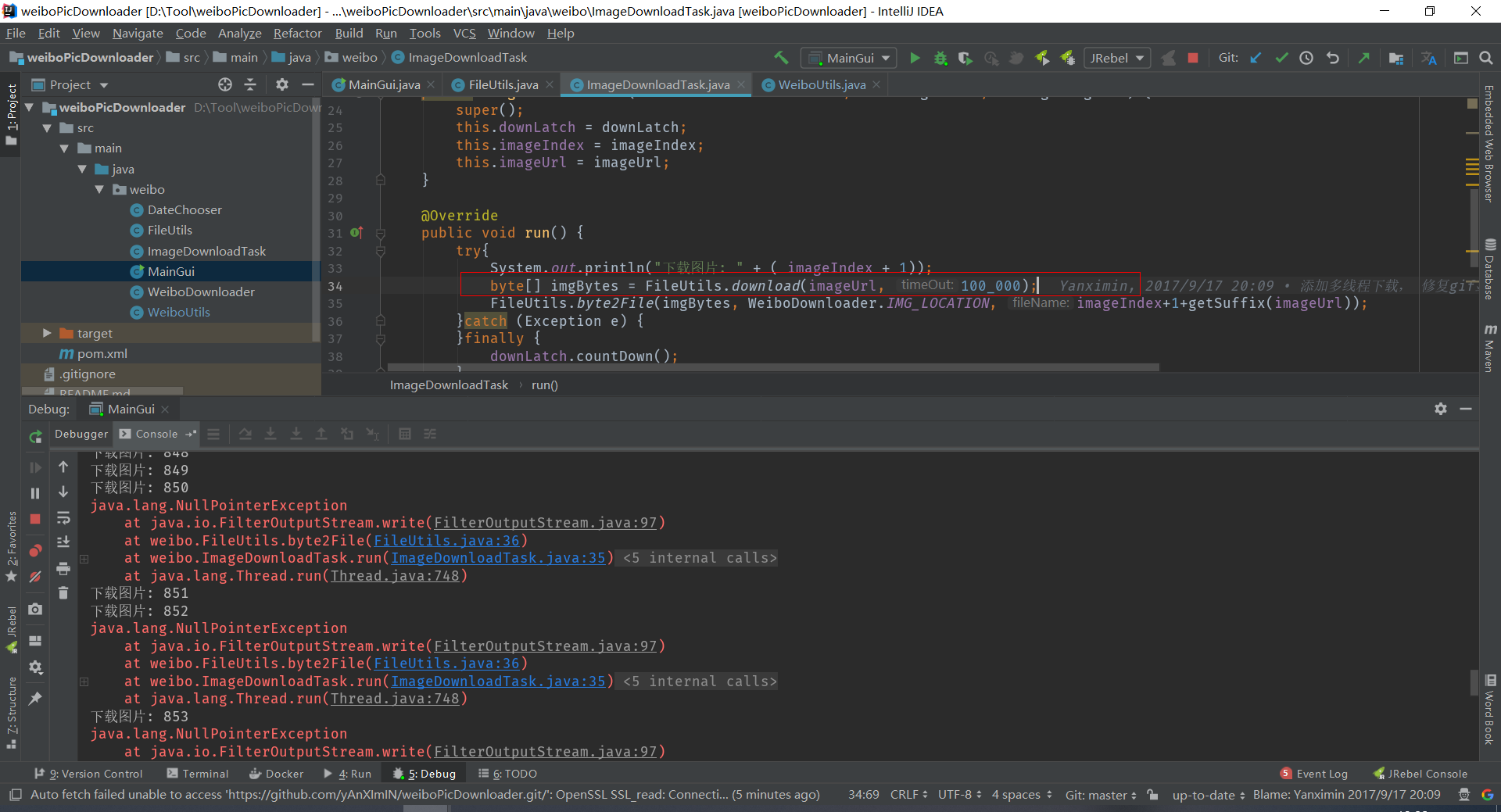5.继续排雷,找个图片数量多的博客试试, 下载过程中会出现空指针