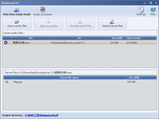 将音频丢入deepsound中解密,密码提示弱口令,猜出来是123