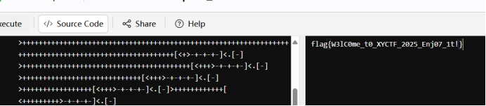所以我们给[-]前都加上一个点再运行即可得到flag