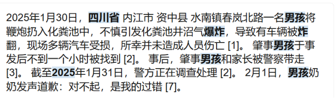 根据题目描述可以得知是之前四川省小孩炸下水道的那件新闻,百度一搜便出来了