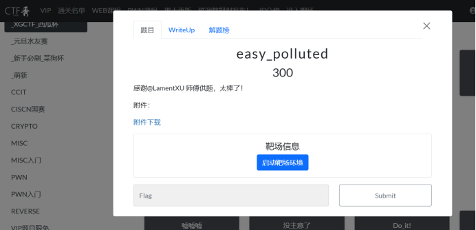 根据题目描述在ctfshow的题目列表中找到对应的题目,名为polluted
