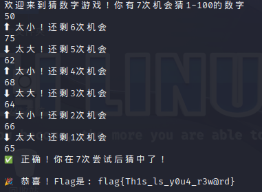 知道是猜数字的游戏,猜数字游戏使用二分法是最快的解决方法,即每次取区间中间值即可以最少次数解出