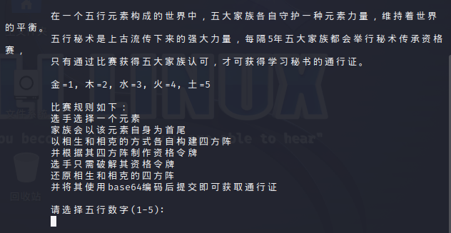 WP:我们先看规则,金木水火土五大元素,选手选择一个元素则会以该元素自身为首尾,以相生和相克的方式构建四方阵(矩阵),根据这个矩阵制作令牌,我们只需还原相生和相克的矩阵编码即可。