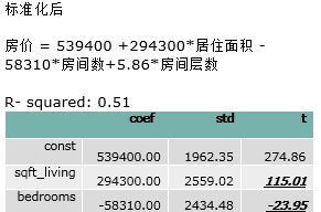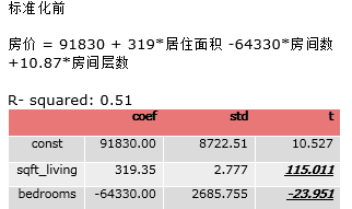 可以看出,标准化前后变量的系数不同,误差不同,但是R平方,和变量的t值是相同的。