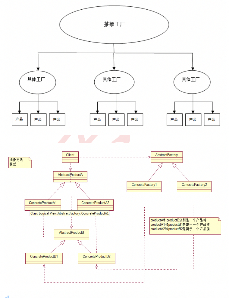 抽象工厂简单地说是工厂的工厂,抽象工厂可以创建具体工厂,由具体工厂来产生具体产品。