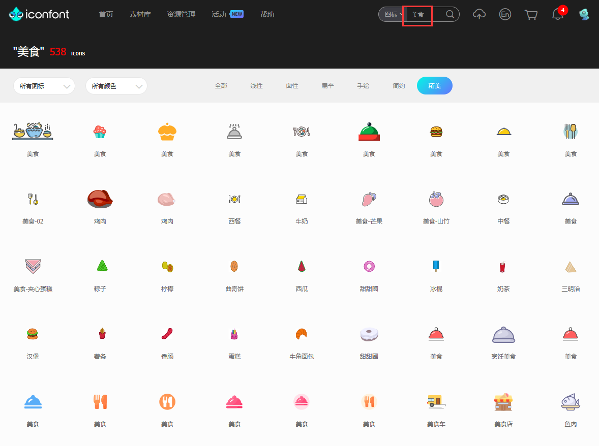 一、搜索或者直接选择自己想要的图标类型(地址:https://www.iconfont.cn/)